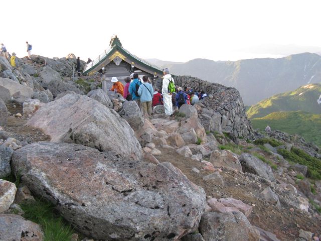 朝二時半起床。三時に家をでる。高速の松本インターから国道158号を使い、高山を横断し、大白川駐車場に九時着。15分から登山開始。白山室堂まで四時間の予定だが、着いたのは二時近くで、ばてばての到着。本当にばてる。途中、濃碧色のダム湖と花がなければもっと悲惨だったろう。食前に自然観察のボランティア授業をうける。すごくためになった。ナナカマドの由来、また二種類あること、クロユリに単性と両性の二種類があること、またおしがらすがはいまつの実を食べ、広めてくれることなどの知識をえた。朝、四時にご来光登山。四時50分、薄めだが太陽が登り、拝むことができた。さすが霊山禰宜が万歳三唱をしてくれた。驚きでもあった。七時下山。十一時に駐車場に着く。足ががくがくであった。階段が多く、膝にくる山でもあったが、さすが多くの高山植物があり、花 の山であった。七時、家に着く。