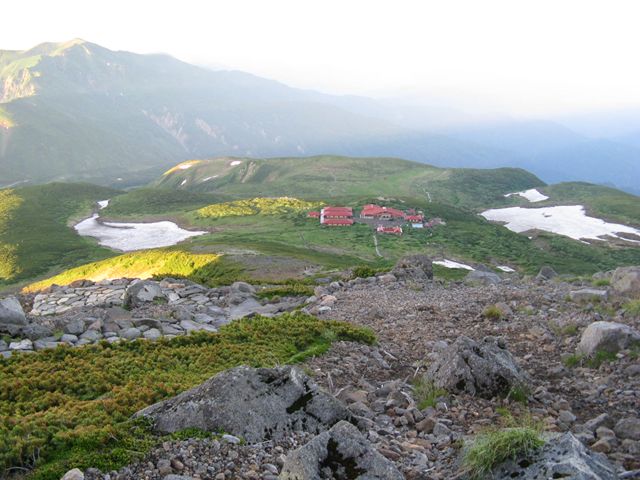黒沢につく。富士見平を左へと向かい、高谷池ヒュツテにつく。軽いナップにかえて火打ちに向かう。途中、天狗の庭という場所があり、なかなかの絶景であった。湿地帯のむこうに岩のオブジェがきれいに並び、さながら作られた庭という感じであった。昼の日照りもあり、登頂するのに難儀し、11時やっと頂上にたどり着く。昼食。また高谷池にもどり、リュツクを詰め直し、黒沢池ヒュツテに向かう。2時20分、これもへとへとになって到着。少し、仮眠する。夜の食事はお粗末。ただドーム式の山小屋で印象深いものがあった。スキーのプロたちの練習場所でもあるとのこと。八時には全員睡眠。